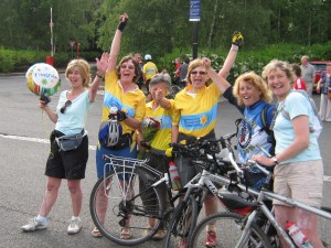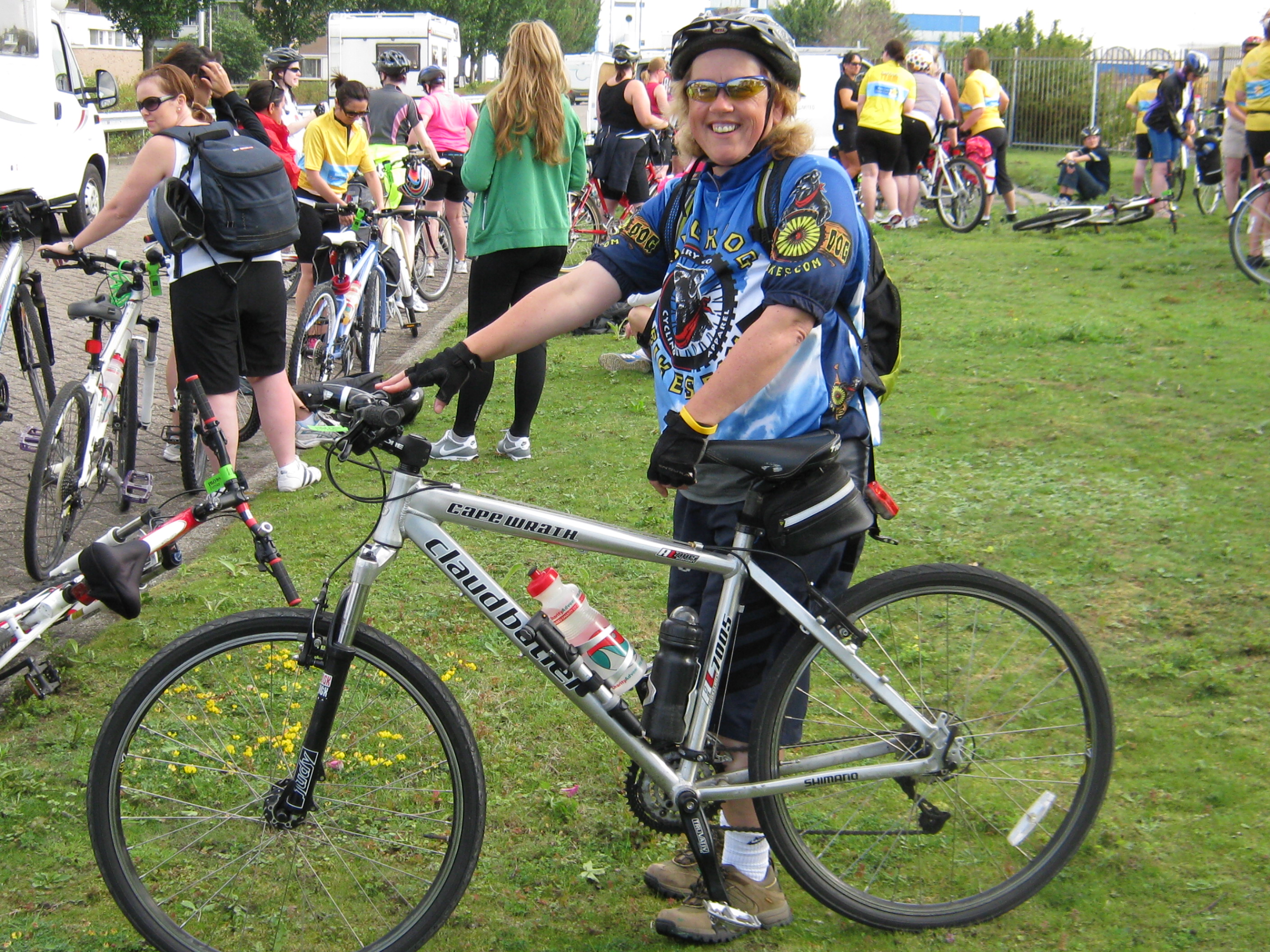 I have, as you may have guessed, been well and truly bitten by the biking bug, so it may not surprise you that I have been looking for bigger and better cycling challenges to test my skills and stretch my experience. Or if you you must put it that way, I’ve been looking for mad things to do on two wheels. My recent exploit was a 250 mile charity cycle from York to Amsterdam (and back – very vital piece of the picture that). Held over five days, the event was to raise money for Marie Curie Cancer Care, and involved a party of some 56 women plus 6 Ride Leaders from Charity Adventure – the organising group. So there I was, the lone Scot among a crowd of women with strange accents all standing at the Failford Designer Outlet at stupid o’clock in the morning of Friday June 11th awaiting our departure orders. I was in Team 3 which included a very loud Scouser called Nikki and an interesting assortment of people of all shapes, sizes and ages. Another niggle abated as I realised I was neither the oldest nor the fattest. Now I don’t intend to give you a mile by mile account of the trip. Instead I shall give you a photo montage with suitable captions, and a brief bit here.