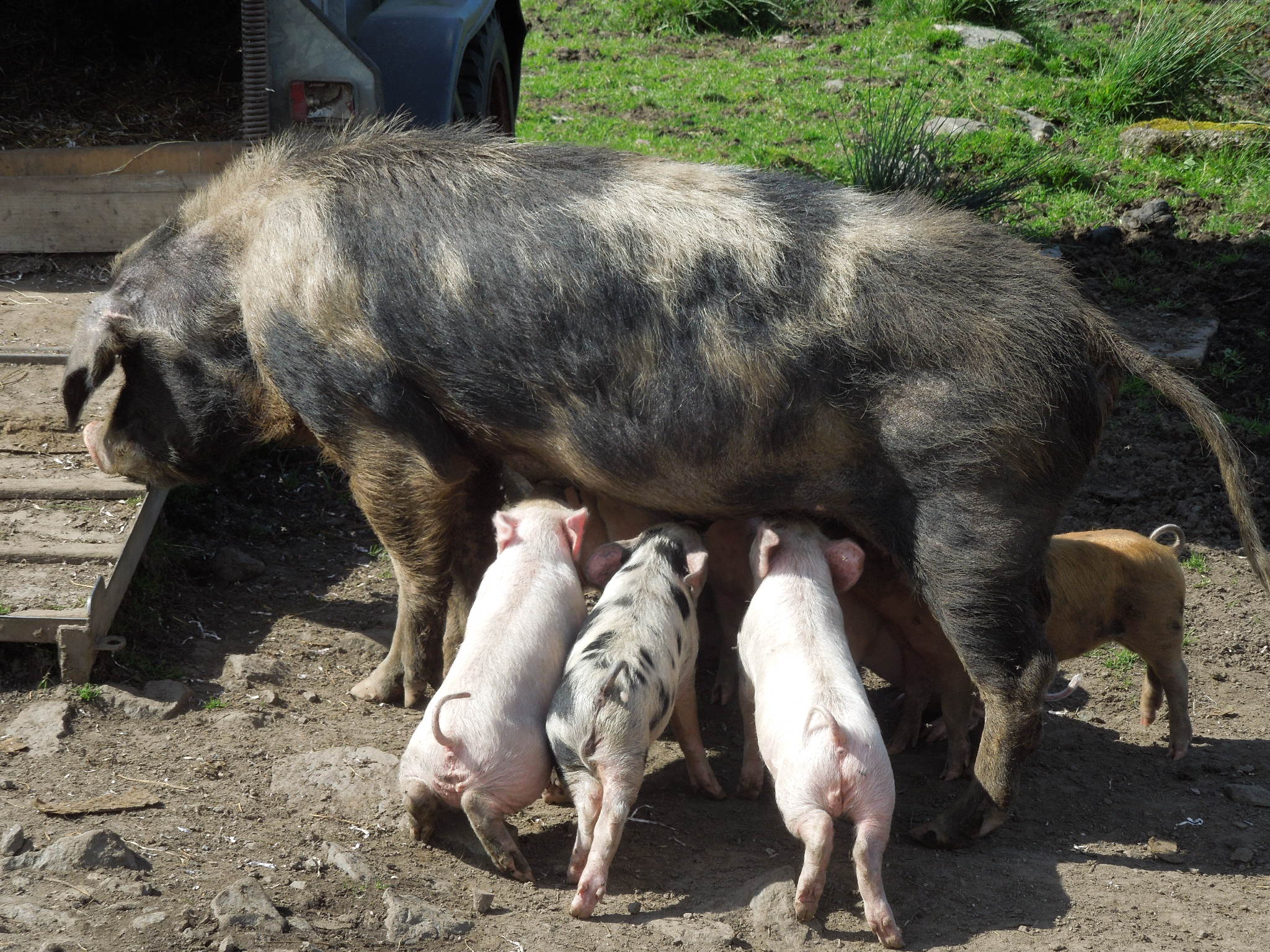 Day Two was scheduled as a bus trip up to Stornoway (with the bikes in the boot of course) and a cycle right up to the top of the island and a return via the Standing Stones of Calanais. The total mileage for the day would have been in the region of 110. I say “would have been” as the whole plan hinged on that crucial bus link. Unfortunately Hebrides Transport saw otherwise and had put a minivan on the route instead of the coach and the driver sailed somewhat arrogantly past us. We decided to start cycling with a view to catching the next bus at whatever point it passed us. And yes, “passed us” it indeed did, although I managed to get it to stop a few yards on. The driver was less than helpful and omitted to tell us that if we got as far as Tarbert, the coach would take us up to Stornoway – a fact we only discovered over a coffee in the splendid and extremely well cake-endowed First Fruits café at the pier in Tarbert. Faced with a wait of an hour, we revised our plans and decided that Calanais was a must see and we’d just have to cut short the day’s ride. This turned out to be a good choice as we were able to spend slightly longer at the stones than we might have otherwise, and it cut out the Cleisham hill. It also allowed us to spend quarter of an hour oohing and ahhhing at some cute little piglets which were about the only type of wildlife on the islands that didn’t attack Laura. More of that later.