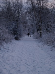In case you all think I’ve been posted missing in action (or indeed just posted inaction) please take a look at the pics – this is how the cycle tracks have been for the past week. Before that there were a few days of solid ice – all of which has put a serious dent in my cycling activities outdoors. It’s all very purty, but I’d really really like it all to go away now so I can get back in a real saddle as opposed to a spin bike at the David Lloyd.