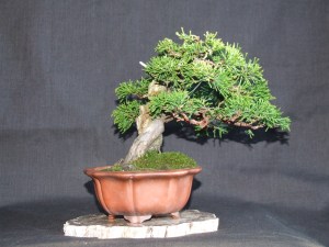Today’s workshop was more routine than Burrs and I took down my achilles heel tree – a San Jose Juniper I got from Dan Barton about four years ago and which has caused me endless grief ever since. It simply won’t do what I want it to do and I have spent an eternity wiring and rewiring it. (If God had wanted us to spend our time in this way, the lines in the Karate Kid would be “wire on, wire off” and nothing to do with wax!) Branches have died, fallen off or generally been a pain. And it just keeps growing which you’d think would be a good thing. But the new growth is like very small javelin – each one of them aimed at my fingers, eyes and any other body parts which get in the way. I’m tellin’ ya – the tree got attitude!