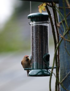 And, as an added bonus (anorak alert here, folks!) while watchng the feeders over the course of the day, I noticed two new visitors to the garden: a Goldfinch and a Common Redpoll – both attracted, it seems, by the new Nyger seed feeder. A couple of new tourists equals a cost vindicated. Sweet! It of course gave rise to the conversation about whether or not certain birds had been to the garden before we started paying such close attention. We’ve certainly had Goldfinches in the past (but not this year) but I don’t ever recall a Common Redpoll visiting. Made up slightly for not getting to Willowbog and to Jill and Amy’s.